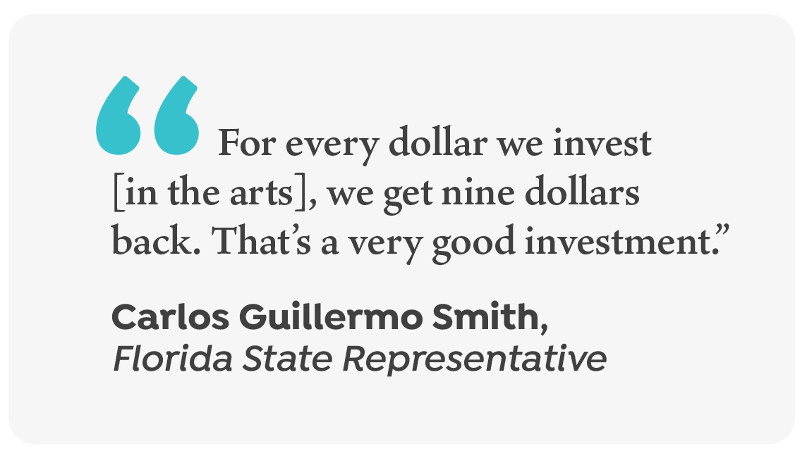 Reflecting on this year’s state legislative session, lawmakers cheered the announced funding of $19 million for arts and culture programs. Although well below the approximately $60 million requested by groups statewide, lawmakers were encouraged by the outcome. “We worked really hard to boost arts and culture funding to its full potential,” touted Carlos Guillermo Smith. “For every dollar we invest [in the arts], we get nine dollars back. That’s a very good investment.”