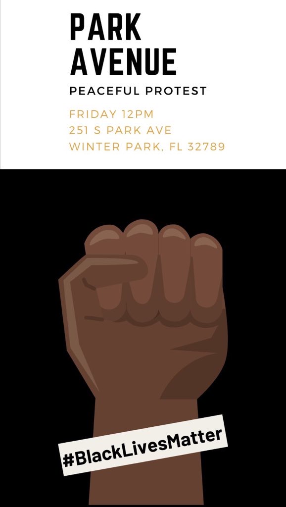 A Twitter post uploaded on June 4 at 1 p.m. announced a peaceful protest in support of the Black Lives Matter movement scheduled for Friday, June 5, at 12 p.m. in Winter Park. Protestors will gather at 251 S Park Avenue.