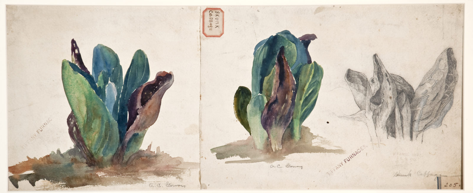 A second installation, Watercolors from Louis Comfort Tiffany’s “Little Arcadia,” features work from some of Tiffany’s most distinguished designers. The collection includes Alice Gouvy’s watercolor-and-graphite designs of a skunk cabbage, which was acquired during the Museum’s temporary COVID-19 closure and will be on display for the first time.