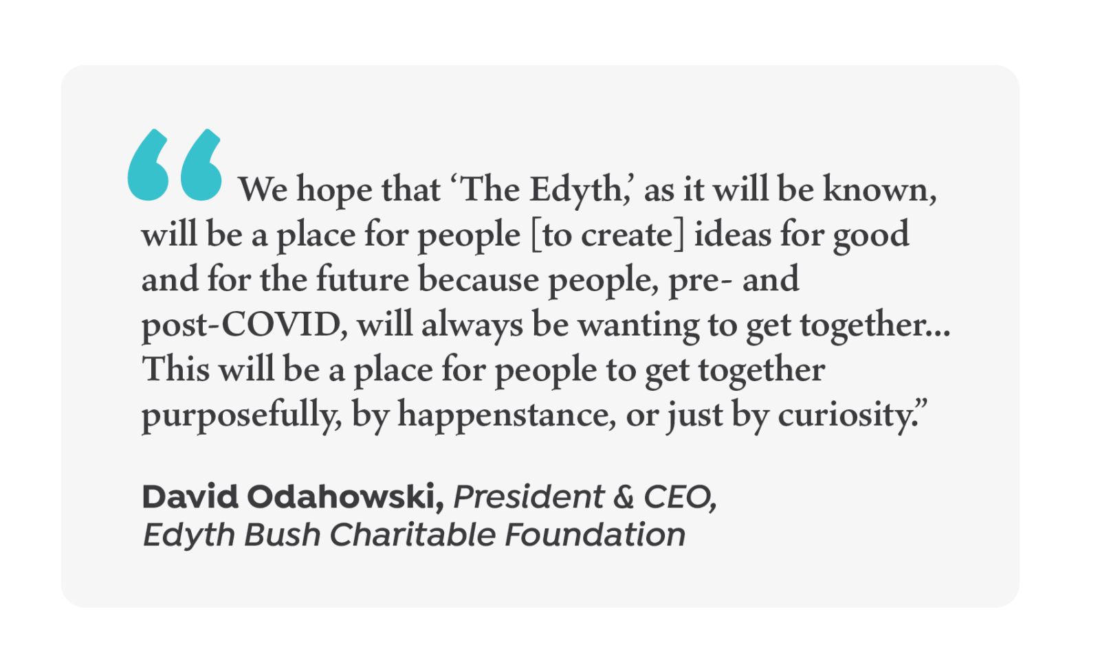 “We hope that ‘The Edyth,’ as it will be known, will be a place for people [to create] ideas for good and for the future because people, pre- and post-COVID, will always be wanting to get together,” said David Odahowski, president & CEO of the Edyth Bush Charitable Foundation. “This will be a place for people to get together purposefully, by happenstance, or just by curiosity.”