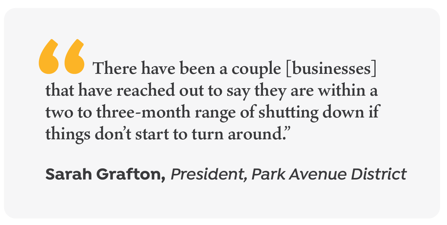 “There have been a couple [businesses] that have reached out to say they are within a two- to three-month range of shutting down if things don’t start to turn around,” Grafton said. “But then there’s others who are in an okay place, but it’s not helping them that other places are closing on the avenue because there is less of a draw for people to come visit.”