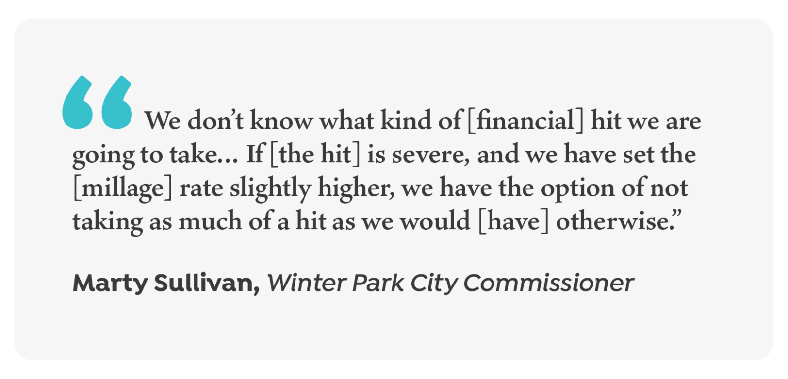 When Commissioner Sullivan first proposed the increase July 22, he stated “we don’t know what kind of [financial] hit we are going to take… If [the hit] is severe, and we have set the [millage] rate slightly higher, we have the option of not taking as much of a hit as we would [have] otherwise.”