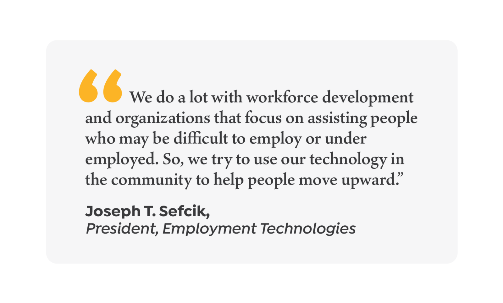 Recently celebrating 25 years in business, Joseph T. Sefcik, president of Employment Technologies, reflected on the journey that brought him to this incredible milestone. Founded in April 1995, Employment Technologies provides a range of services to help drive businesses’ pre-employment testing processes for vetting and selecting potential employees. By combining simulations with traditional testing methods, Employment Technologies developed the industry’s first commercial job simulation. The company’s signature EASy Simulations® product line features interactive experienc es immersing candidates in their desired position. “It’s a completely different type of testing than most people are familiar with,” Sefcik said. “Rather than asking survey questions, we’re actually reenacting and recreating jobs through simulation.”
