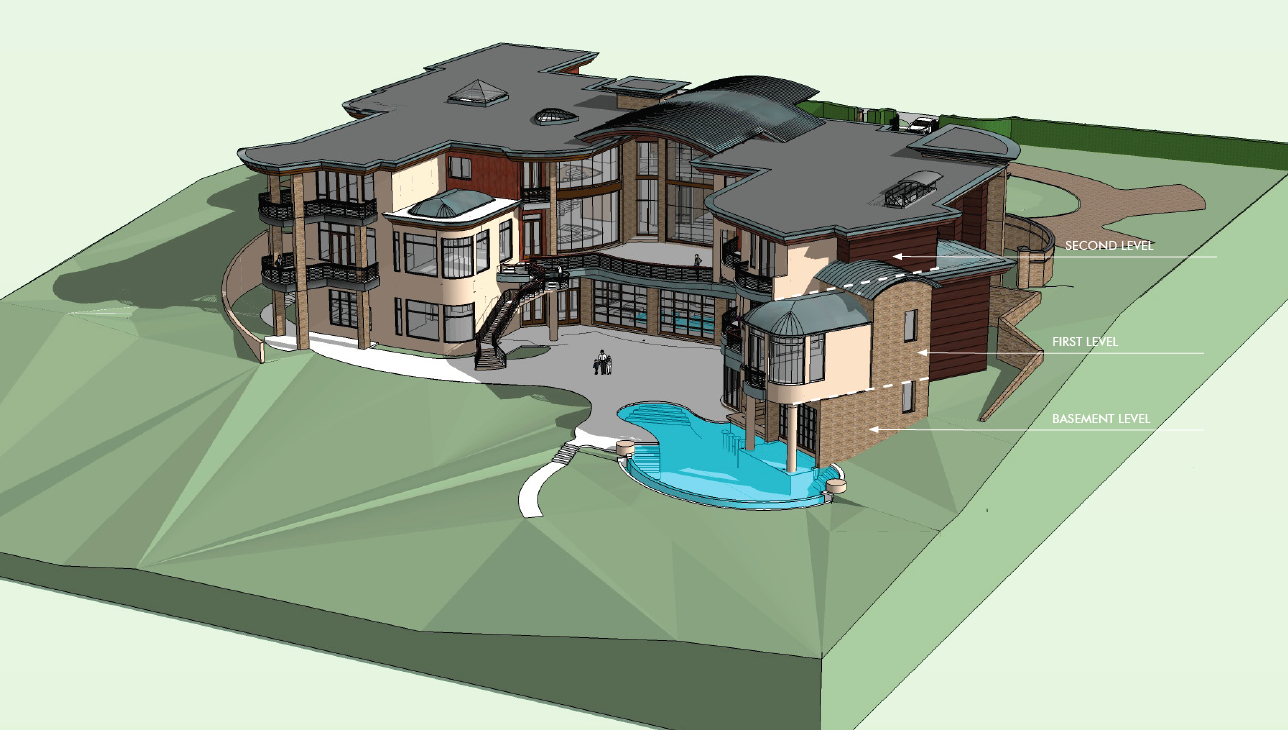 Renderings of the home illustrate a two-story residence with a basement level, luxury pool, floor-to-ceiling windows overlooking the lake, a large elevated outdoor living space, and several balconies. The project’s team includes Maitland-based architect Charlan Brock Architects and landscape architecture firm Dix.Hite + Partners.