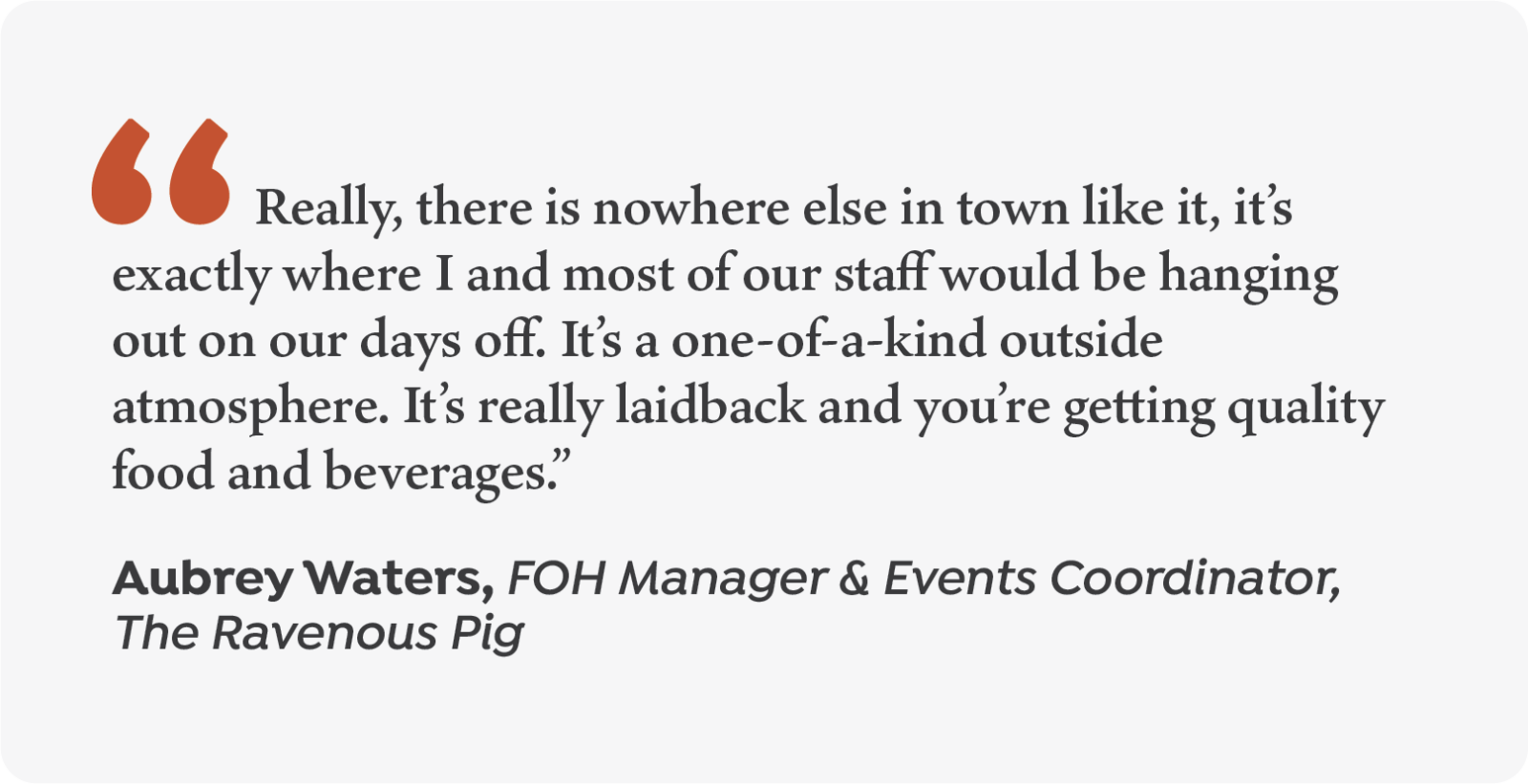 “Really, there is nowhere else in town like it, it’s exactly where I and most of our staff would be hanging out on our days off,” Waters said. “It’s a one-of-a-kind outside atmosphere. It’s really laidback and you’re getting quality food and beverages.”