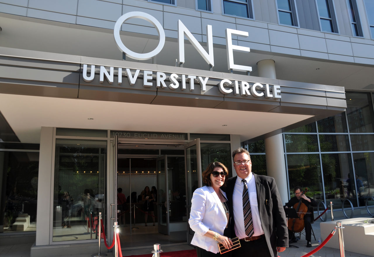Founders Scott and Analía Dimit at the ribbon cutting of One University Circle in Cleveland, Ohio. Photo Courtesy of: Dimit Architects