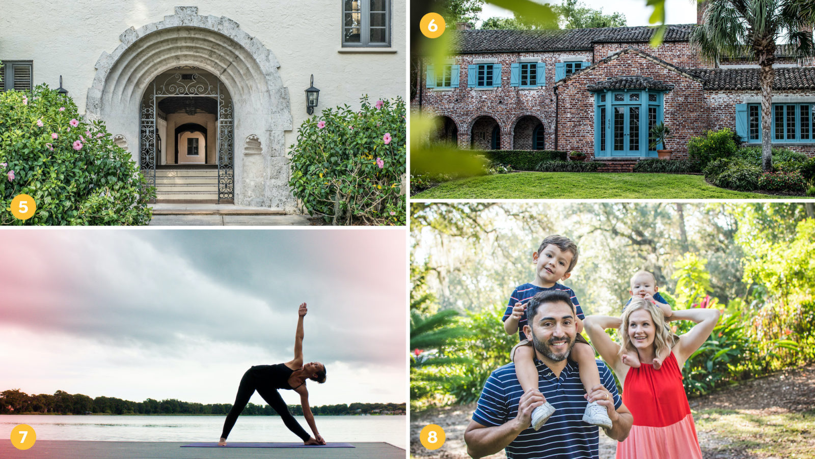 (4) The Alfond Inn – This local gem of a hotel is stunning inside and out. With a modern style, tropical courtyard, and colorful artwork on display throughout the hotel, the scenery is a great fit for any occasion. The Inn is ideal for your next business headshot or even a fun engagement shoot.Rollins College – Named “most beautiful college” by The Princeton Review, Rollins College offers many opportunities to capture the perfect shot. Featuring various archways, scenic lakefront views, vintage architecture, and colorful tiles, the options are endless.