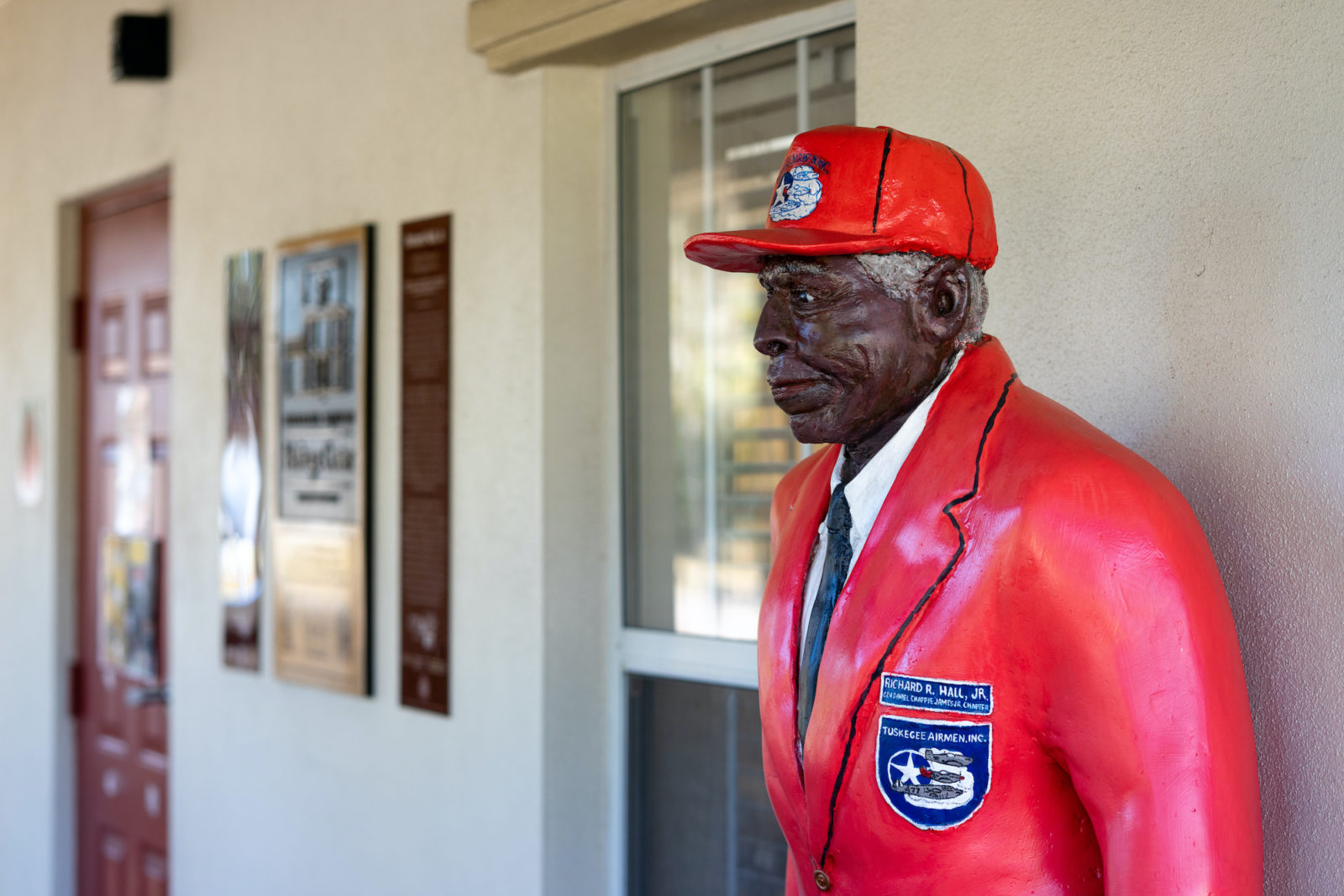 Hall owned several rental properties in which he housed church members with no means to pay. He regularly performed acts of service like this without recognition. Notable acts like these inspired the construction of a life-size sculpture of Hall near the entrance of the Hannibal Square Heritage Center. Wearing a red jacket and cap, the sculpture of Hall nods to the Red Tail planes he helped maintain during World War II.