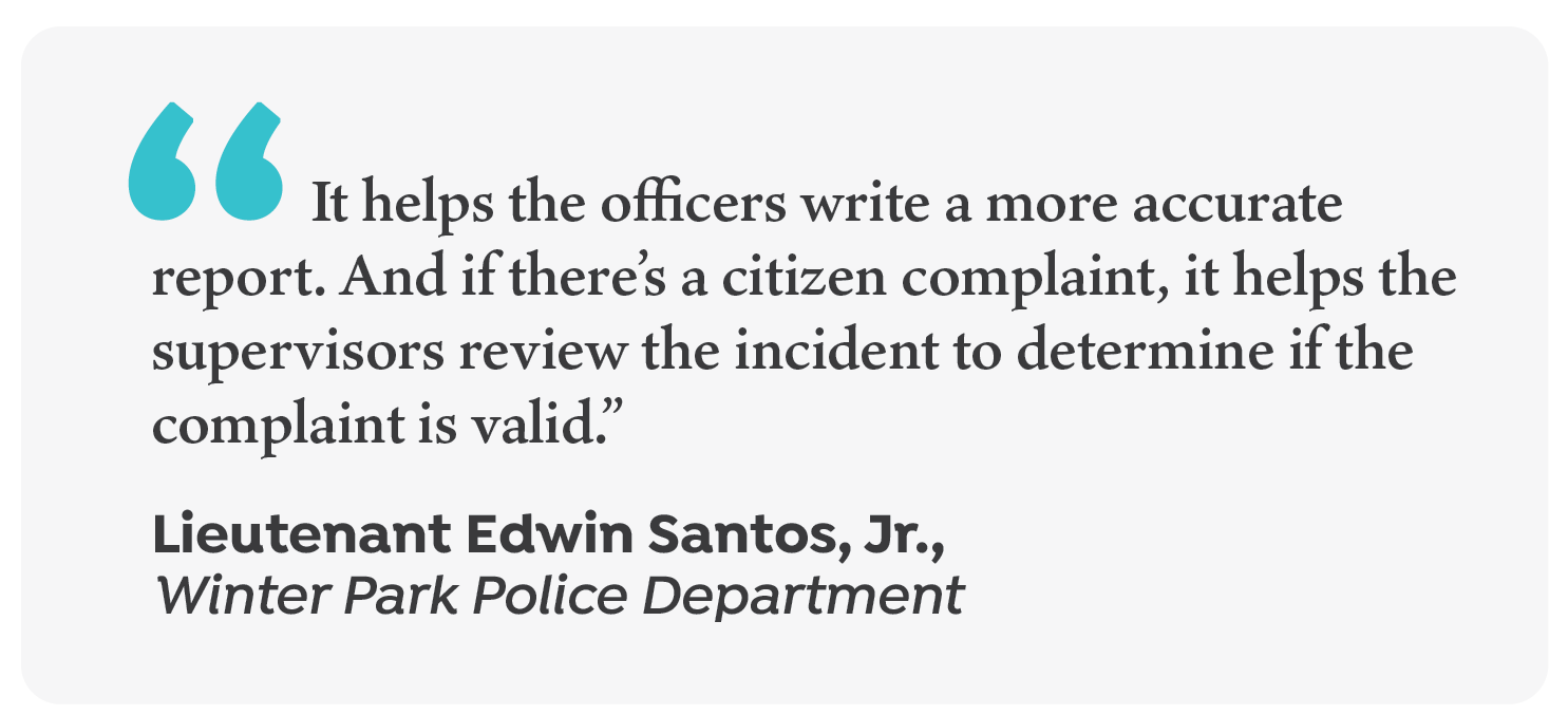 “At first, some of the officers were skeptical,” Santos said. “But they’ve seen that the body cameras often cause suspects’ behavior to change. Once they see the body camera, their attitude changes, because they know they’re being recorded,” he said. Santos explained that often times the suspects became more compliant.