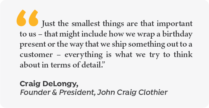 DeLongy and his family were living in the area when he first introduced his vision, John Craig, on March 2, 1996. Since its inception, the clothier has impacted the community’s fashion scene as well as his family.