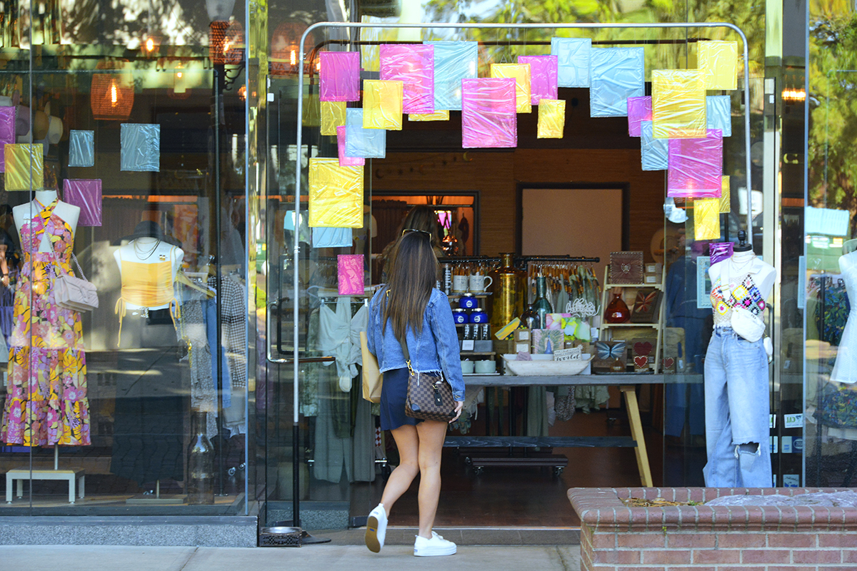 In addition to enticing shoppers, the archway works with in-store displays to create a continuous visual theme throughout the shopping experience. “We try to incorporate the colors and collections of the fashion season,” said Katsandris. “In fall we use more muted colors, then bright and bold for spring.” She also credits Forema Boutique event coordinator Jennifer McDonald for designing the seasonal spectacle.
