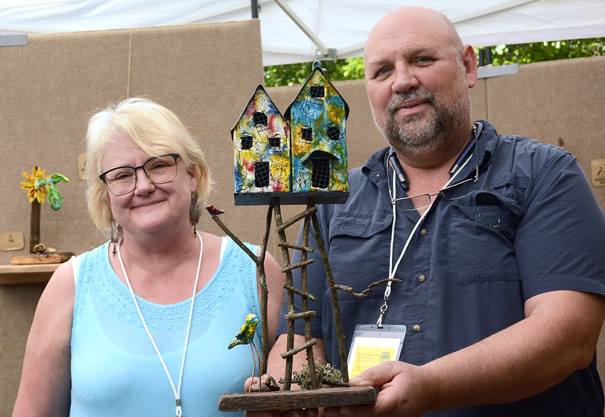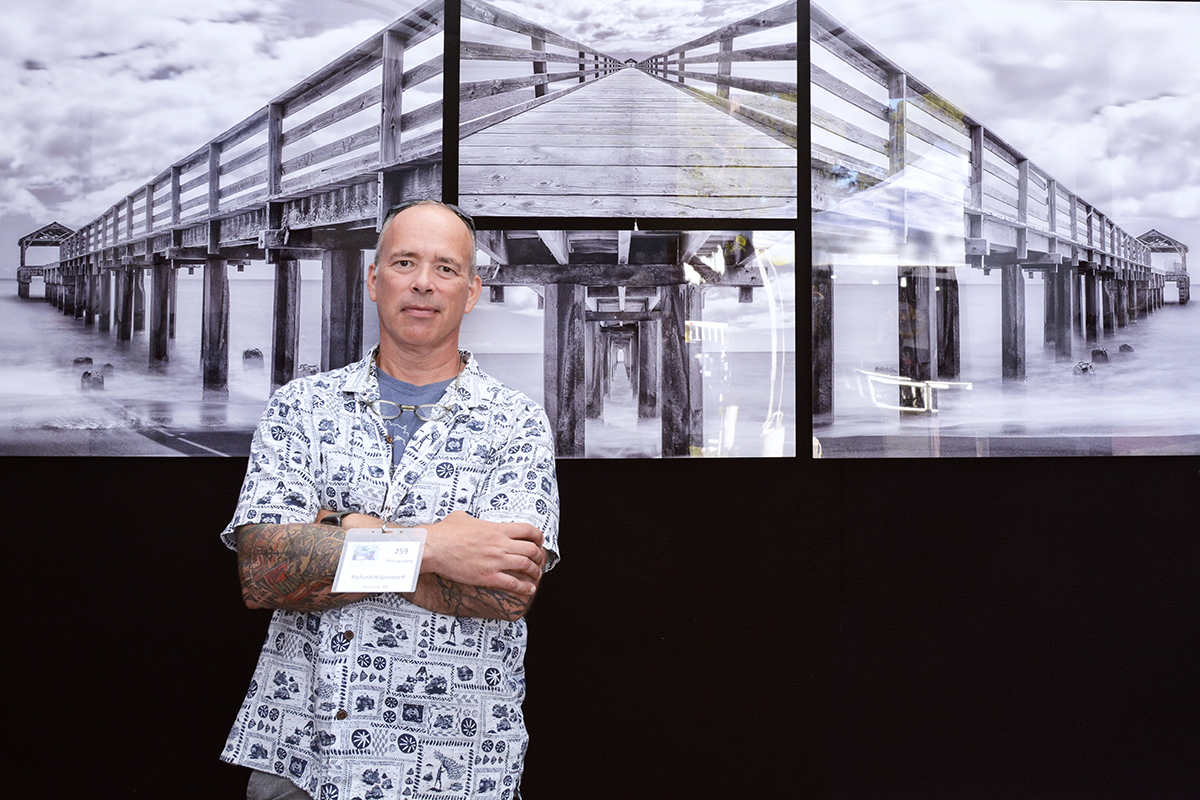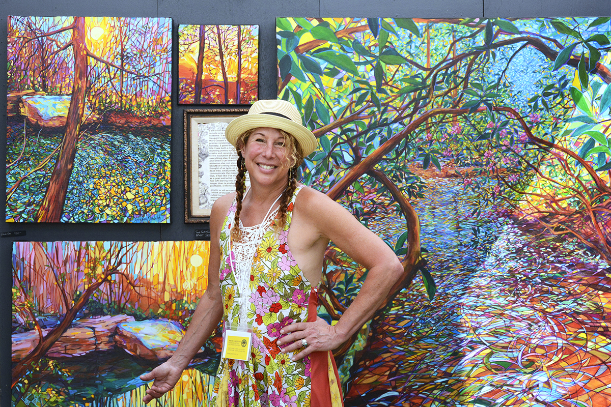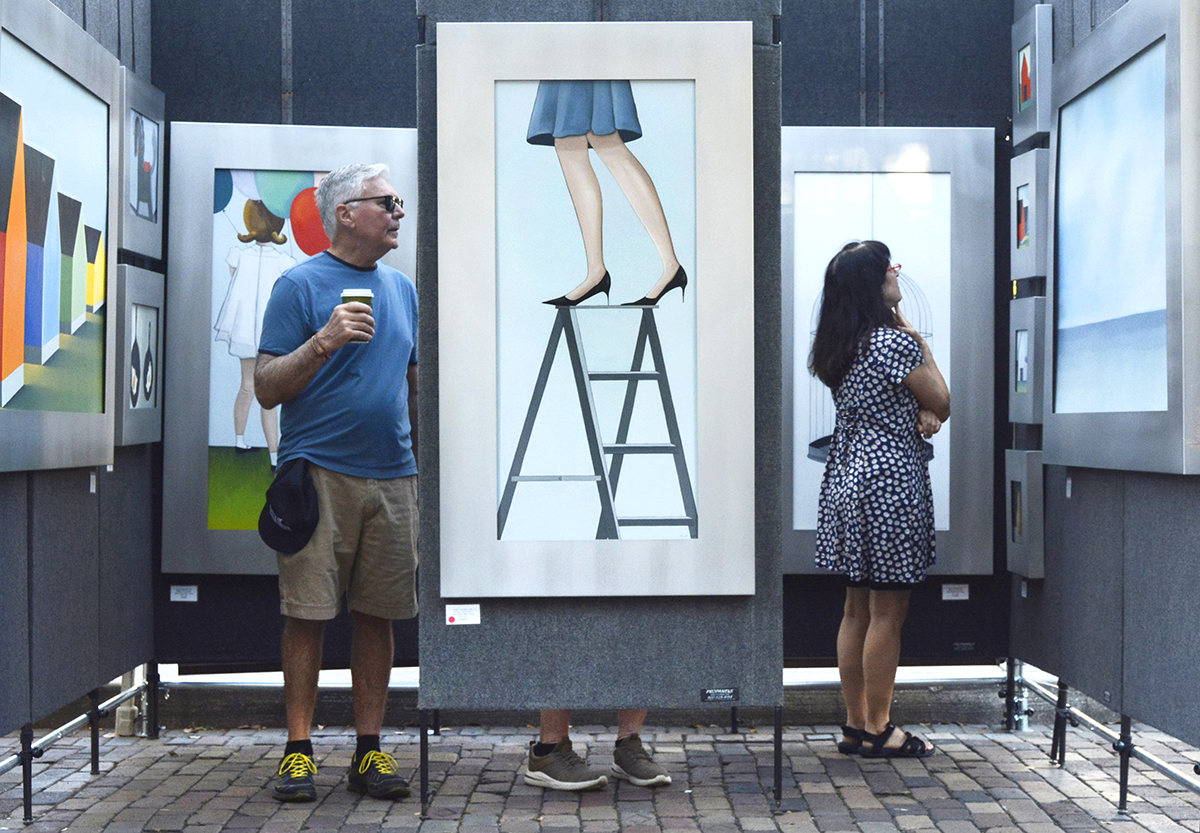 Patrons notice a Buddha sculpture by glass artist Marlene Rose, of Clearwater.Winter Park-based artist John Whipple with some of his mixed-media portraits.James Whipple – brother of John Whipple – arranges his intricate paper collages in his artist booth.The morning sun shines through the glass art of Detroit-based Andrew Madvin.Matthew Naftzger, of Milwaukee, shows off one if his titanium sculptures.Photographer Richard Gayle, of Portland, Maine, exhibited a collection of panoramic scenery.Patrons watch as woodworker James Pearce, of Illinois, shows off a chess table in his exhibit area.Michigan-based artist John Louis Krieger created this “Flying Fish” to honor his uncle, a WW2 pilot.Ella Castino, of Maitland, wears a hat she colored at one of the festival’s children’s workshops.Watercolor artist Vonnie Whitworth, of Virginia Beach, specializes in portraits and realistic scenes..The shops along Park Avenue offer sales and specials during art festival weekend.The springtime weather meant outdoor seating was hard to find at cafés and restaurants.With Park Avenue closed and parking hard to find, SunRail proved very popular for festival goers.Vickie and Terry Bradshaw, of Tennessee, participate in their first WInter Park art festival with their whimsical sculptures of “abandoned” houses, inspired when their children moved out on their own.Lydia Adele Randolph, of Alabama, uses multiple layers and vanishing points to create her colorful landscape paintings.Chris Cumbie, of Mobile, Alabama, combines text and sculpture in his unique art pieces.