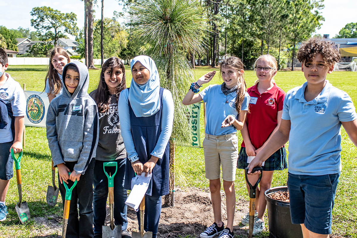 The group planted seven longleaf pines, blessing each one in traditional manner according to each faith. The observance is meant to encourage children to appreciate diversity and build positive relationships while learning about environmental responsibility.