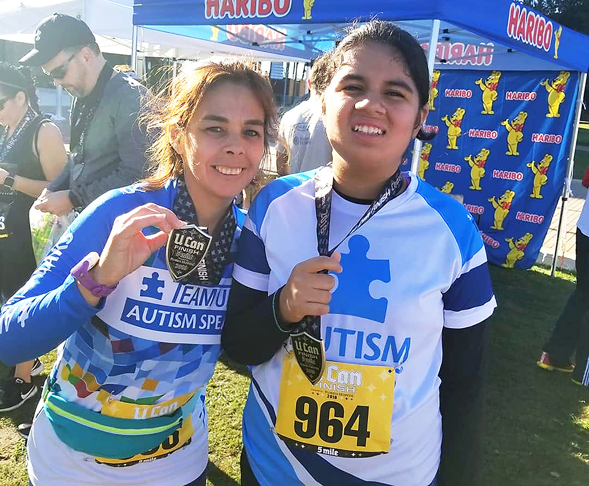 With years of marathon experience, Karina was prepared to serve as her daughter’s guide runner in local 5K and 10K events. In October of 2021, Samantha and Karina finished the virtual Boston Marathon together. One month later, Samantha came full circle to become the youngest female with autism to finish the New York City marathon. Samantha, now 19-years-old, has earned 42 marathon medals.
